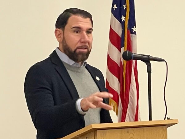 State Sen. Paul Cicarella delivers remarks at the North Haven Memorial Library renovation reception.